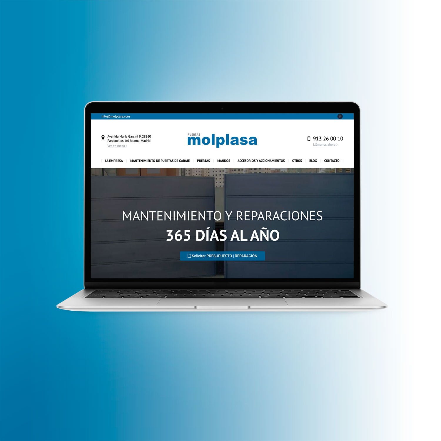Web corporativa de Molplasa, una empresa líder en la reparación y fabricación de puertas metálicas con una fuerte competencia y que se sitúa entre las primeras búsquedas de su sector en Google.